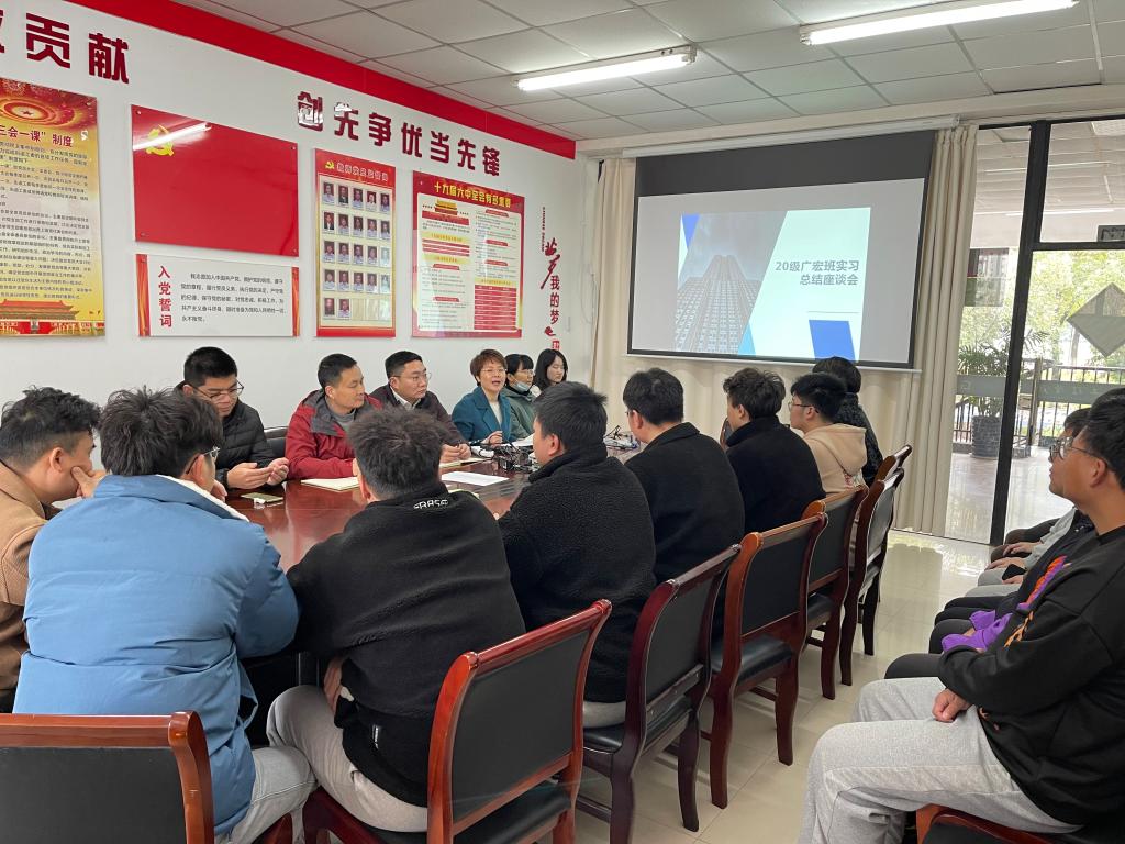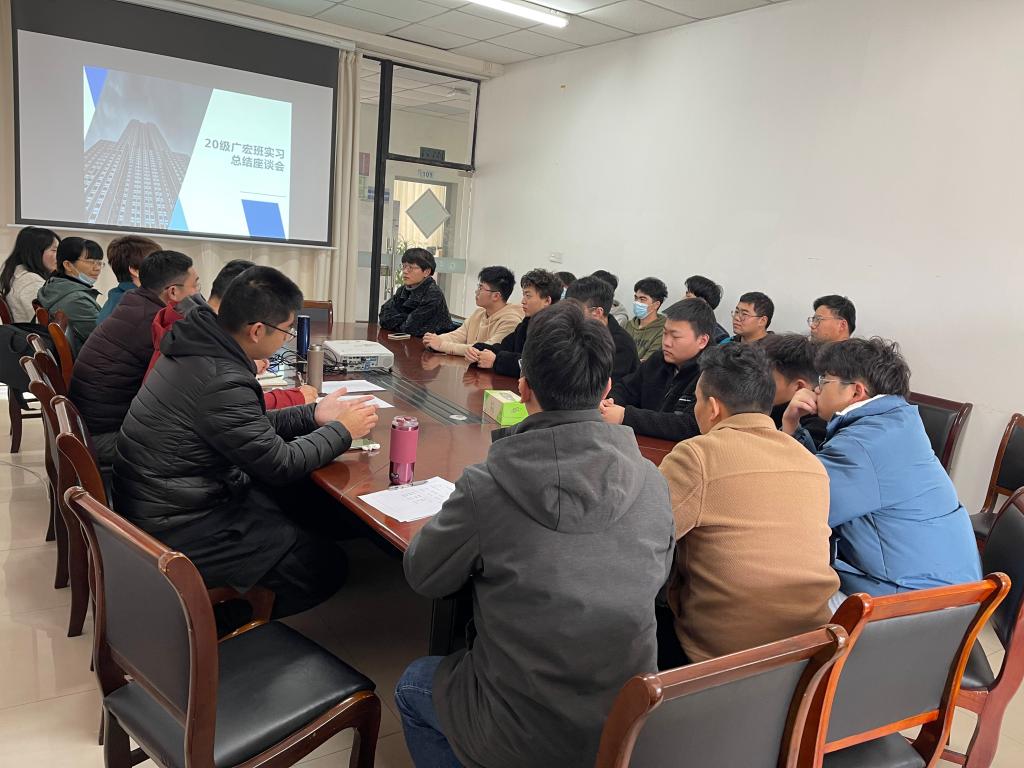 去年下半年,20级广宏班共37名学生被分配到了中天一建、二建和广宏集团下属的8个项目部,进行为期半年的企业实习。本次座谈会上,学生踊跃发言,针对过去半年的企业实习情况进行总结分享,介绍了所在项目概况、实习岗位和内容,分享了自身的收获和体会、以及遇到的困难,并对学校和企业提出了不少意见和建议等。