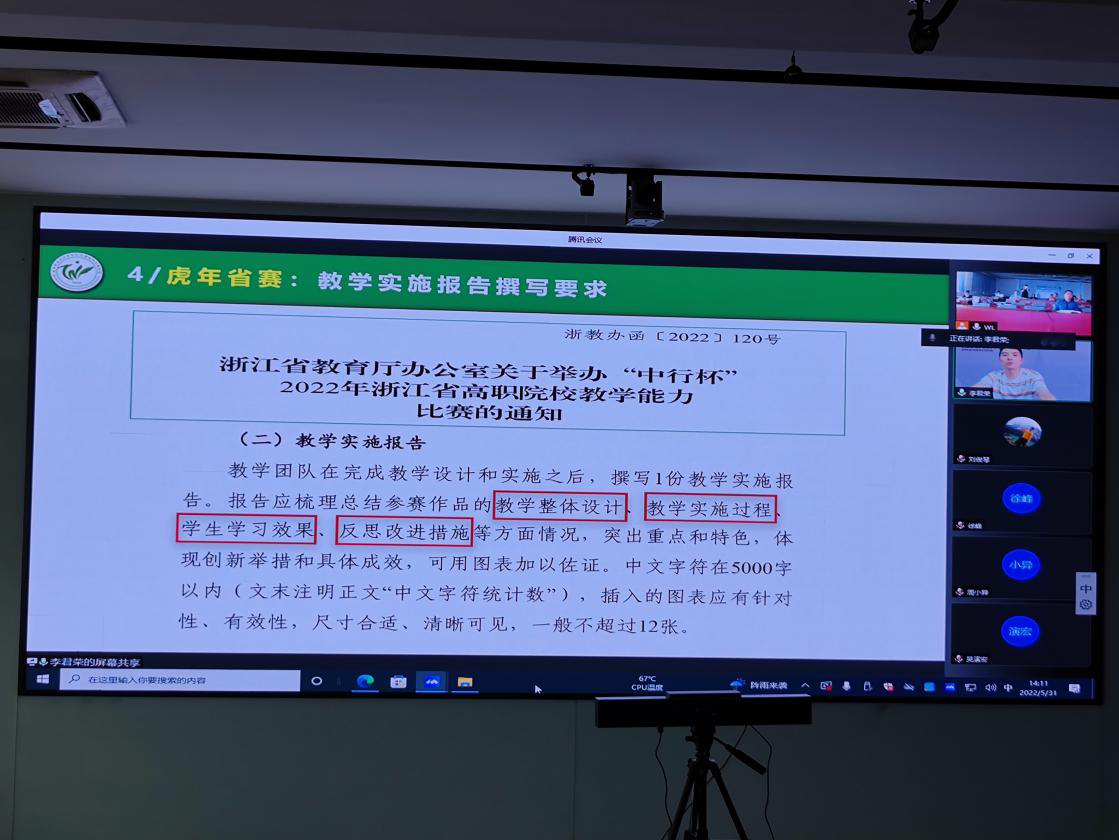 5月31日下午,BBIN所有合作平台邀请金华职业技术学院李荣君教授为学校教师开展线上视频讲座,主题为“教学实施报告的撰写”。李荣君教授是畜牧学博士后,金华市拔尖人才,曾获全国职业院校教学能力比赛一等奖。