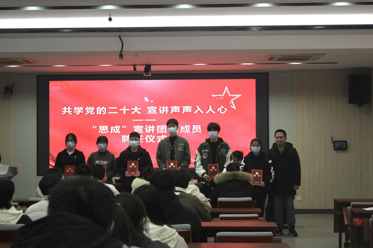 最后,学院对“思成宣讲团”新成员举行聘任仪式,将红色宣讲这根接力棒交到新成员的手中,以朋辈力量带动青年学生学习贯彻党的二十大精神,持续发挥好党的二十大精神学习者、传播者、传承者的作用。