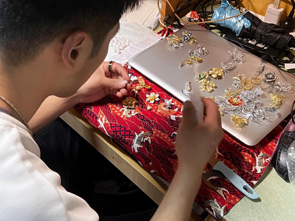 感恩有你,“珍”藏于心。学院优秀创业学子陈涛在这天也用自己的方式送上对老师的祝福。作为饰品行业主理人的他精心挑选珍珠,亲手为每位老师定制了独一无二的胸针。各位老师在桌前精心挑选,将胸针别在衣服上互相欣赏的模样让陈涛同学极其自豪,他说“感谢学院教师对我的培养,希望我的一点小心意能被大家喜欢。”