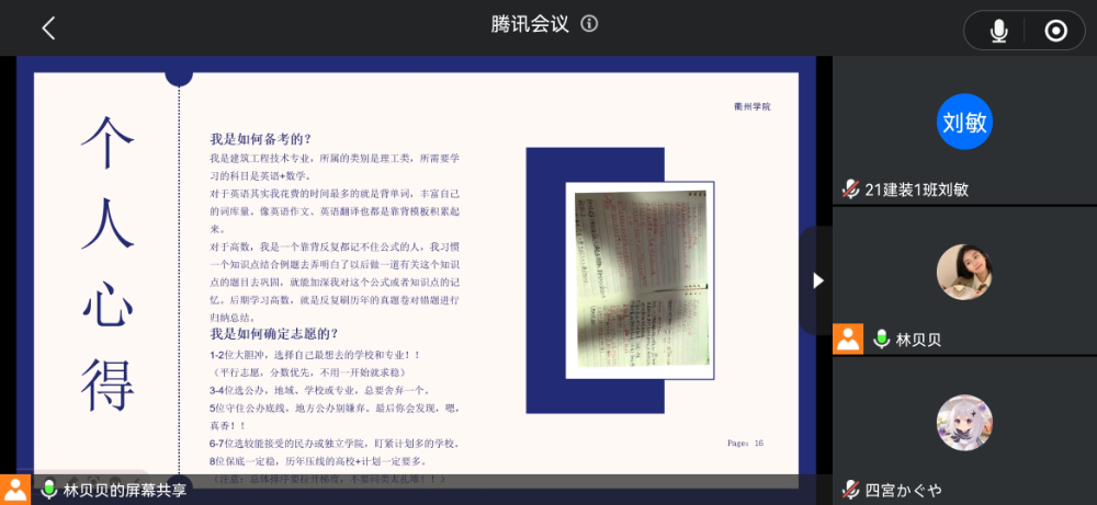 为做好就业指导服务,发挥优秀校友榜样示范作用,同时给想要考取专升本的同学搭建学习交流平台。近日,BBIN所有合作平台邀请2022届优秀毕业生林贝贝开展专升本讲座。目前就读于衢州学院工程管理专业,在校期间担任校新媒体中心摄影部干事一职,曾获得校级优秀毕业生、优秀干事、优秀先进个人、优青团员、2020年度百强校媒全国优秀职院校园媒体成员等荣誉。学院备考专升本同学参加了本次线上讲座。