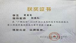 浙江省工程造价技能竞赛一等奖 浙江省建筑装饰应用技术团体三等奖