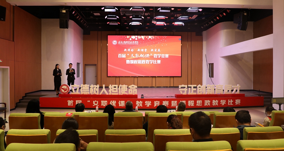 在全校上下认真学习贯彻党的二十大精神之际,学校首届“义职优课”教学竞赛暨课程思政教学比赛于10月31日下午在大学生活动中心麦穗报告厅隆重举行,比赛采用线上线下同步方式进行。院长马广,副院长李慧玲,党委委员、宣传部长樊曜出席,宣传部、人事处、教务处、工会和二级学院相关负责人、部分骨干教师和新教师代表现场观摩,百余位教师在各二级学院分会场通过线上直播观看比赛。比赛特邀校外资深专家同步线上评审,各相关部门负责人、二级学院院长以及教学副院长组成的大众评审团担任现场评审。