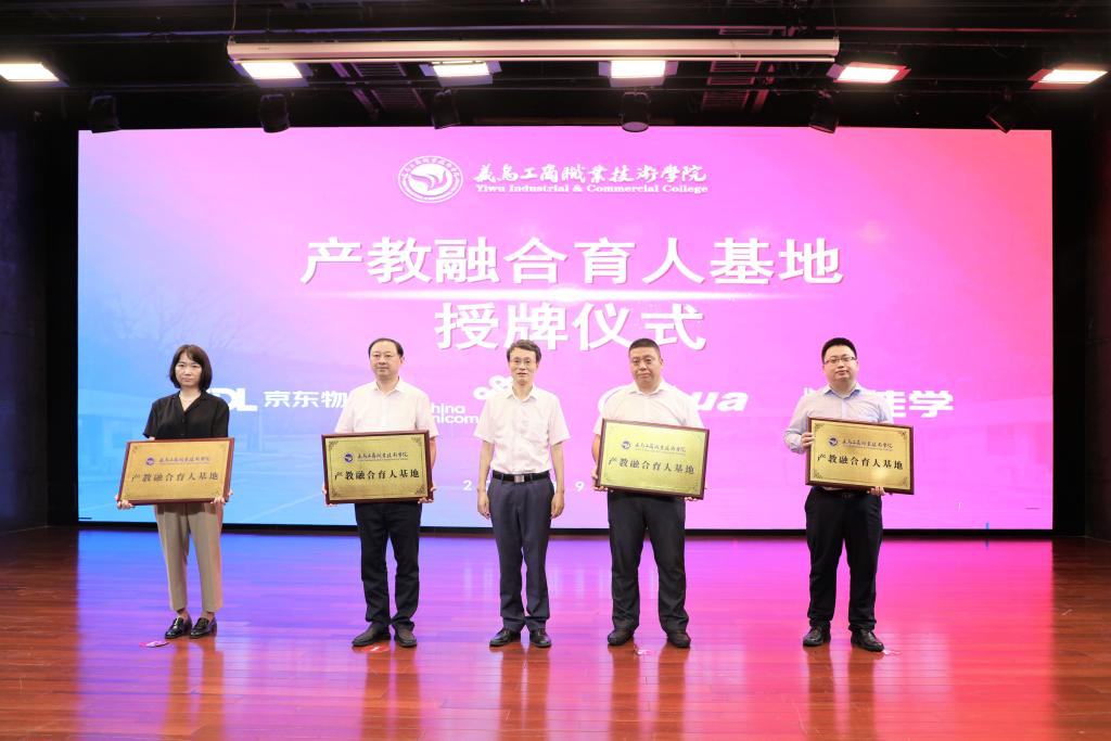 校企合作签约暨授牌仪式上,院长马广代表学校,与浙江大华技术股份有限公司、杭州佳学网络科技有限公司、中国联通浙江省分公司、北京京邦达贸易有限公司(京东物流)等4家高端企业签订了校企合作协议。党委书记李昌祖为合作企业 “产教融合育人实践基地”授牌。本次合作签约的企业中有世界500强企业、中国500强企业、行业龙头企业、国家产教融合型企业,这是学校首次与国家产教融合型企业开展校企合作。